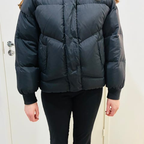 Vähällä käytöllä ollut, ei juuri merkkejä käytöstä. Hupun karva nepparikiinnityksellä. Hihoissa resorit.