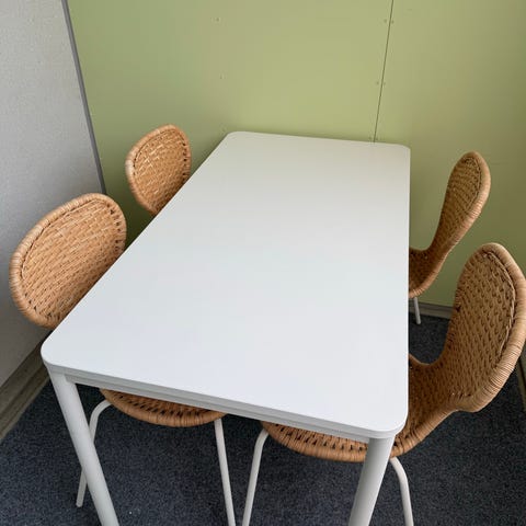 Myydään muuton tieltä pois valkoinen ruokapöytä ja 5 tuolia. Ostettu erikseen eli ei samaa sarjaa, mutta sopivat yhteen. Ruokapöydän merkistä ei tietoa, tuolit Ikean Henriksdal-sarjaa irrotettavalla/pestävällä päällyskankaalla.