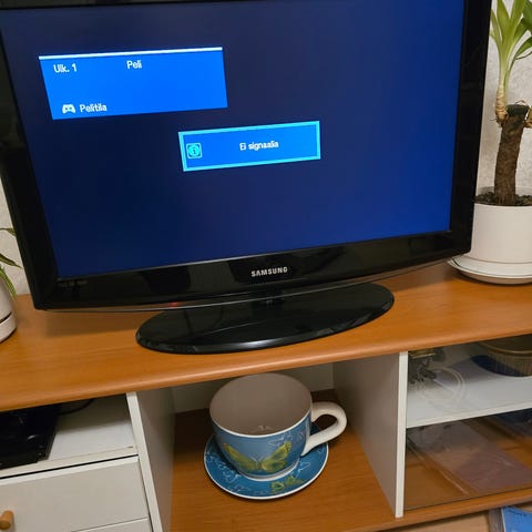 Vanha mutta toimiva tv, tarkka malli tyyppikilven kuvassa. Tämä oli aikanaan hienous kun on vain pari senttiä paksu, ja sen pystyy ripustamaan seinälle kuin taulun. Johdoille on kanava tv-n selkämyksessä. Kaukosäädin taustavalaistu. Digiboksia ei ole mutta apple tv:llä pystytään testaamaan toiminta. Vain nouto.
