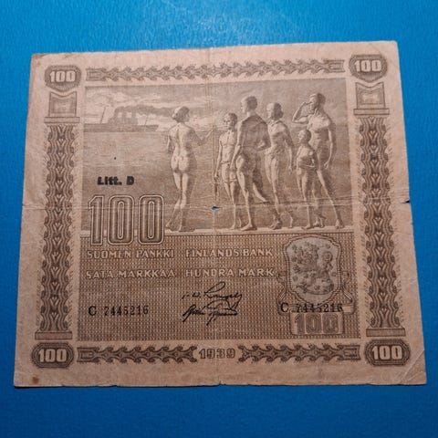 100 markan seteli vuodelta 1957, 3 €