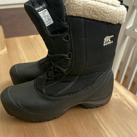 Sorelin lämpimät talvisaappaat kokoa 41 1/3. Siisti yleisilme mutta kumiosassa muutamia tahroja.