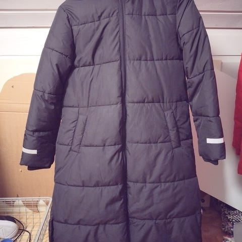 Myydään tummansininen toppatakki, koko 158. Takissa on irrotettava huppu, vetoketju ja napit edessä sekä kaksi etutaskua. Materiaali on säänkestävä. Takki soveltuu käytettäväksi kylmässä talvikelissä.