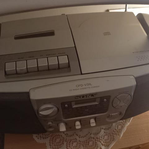 Sonyn radio cd soittimella. Toimii verkkovirralla ja pattereilla