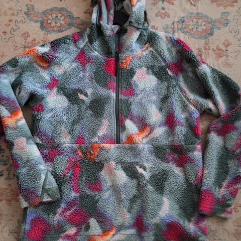 Iso huppari paksuhkoa lämmittävää fleeceä. Pituus 100cm. 2 etutaskua