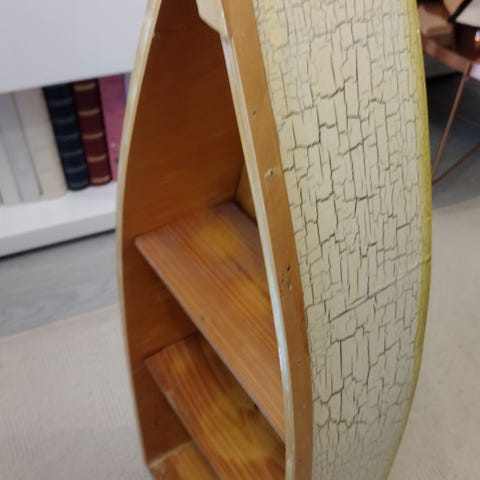 Kaunis, puinen veneen muotoinen seinähylly.