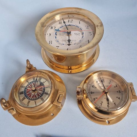 Upea setti erilaisia meritorvia.Kokonaan messinkinen. Kaikki kolme ketjulla.Sarvet toimivat yhä hyvin ja niitä voi käyttää laivalla. Mutta tietysti myös erittäin koristeellisia esimerkiksi merellisessä ympäristössä.Kaksi suurinta sarvea on pituudeltaan 35 cm. Pienin on pituudeltaan 25 cm.Useita valokuvia on lisätty, jotta sarvien kunto voidaan arvioida hyvin.Valokuvien ottaminen on osa kuvausta. Hoorns pakataan erittäin hyvin, ja ne lähetetään rekisteröityinä ja vakuutettuina seuranta- ja jäljityskoodin kanssa.Katso myös muut kohteeni ja säästä mahdollisesti toimituskuluissa.Ei lähetetä Yhdysvaltoihin.