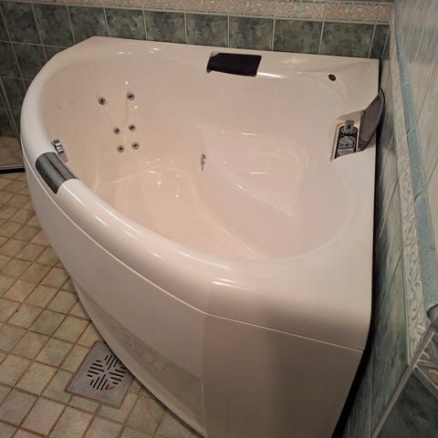 Annetaan kylpyamme / poreamme. Ollut aiemmin käytössä kylpyhuoneessa ja on toimiva, mutta ei ole enää tarpeellinen. Pituus 160 cm, syvyys noin 50–60 cm.