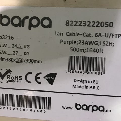 Tietoverkkokaapeli CAT6 UTP/HF1 1XUTP. 200m. VARATTU 22.1. ASTI!