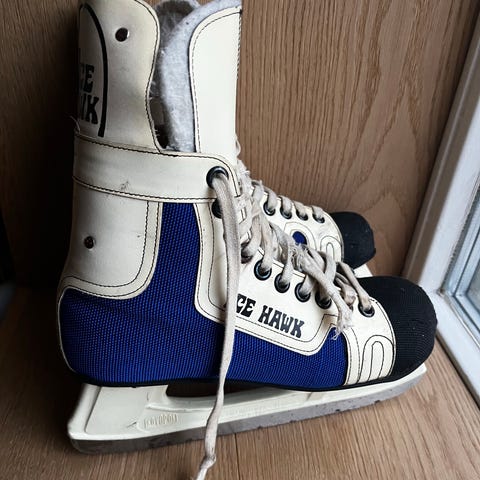 Tyydyttävässä kunnossa olevat Canadien-merkkiset hokkarit. Uudet nauhat ja pohjalliset.