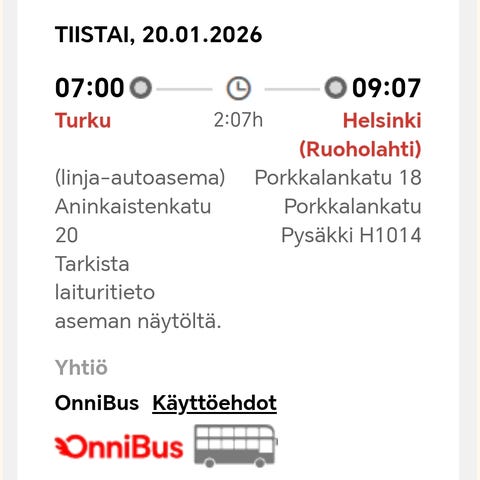 Onnibus 19.1.2026 Turku- Helsinki (Ruoholahti) klo 9:30