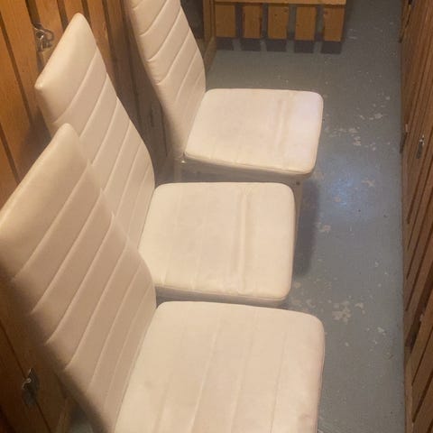 Neljä käytössä ollutta tulevaa hyvää tuolia. Rahan sijasta, kailki 4 tuolia 5€ .voit tuoda vaikka hedelmiä. Nopea nouto!