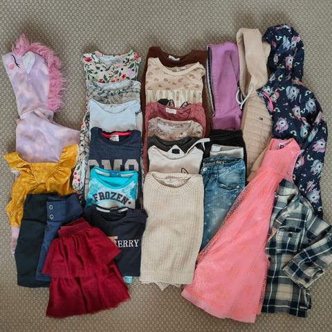 Hyväkuntoista kesävaatetta paketillinen koossa 122/128cm. Paketissa kesämekkoja, t-paitoja, hame, shortseja, lyhyitä leggareita ja pari yöpukua/mekkoa.