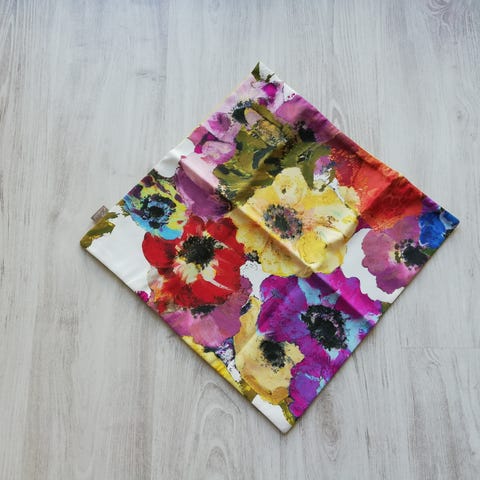 Casa Stockmannin tyynynpäällinen, koko n 47x47cm. Toinen puoli samettimainen materiaali roosan sävyssä ja toinen puoli pellavan väristä, pellava-puuvillasekoite.