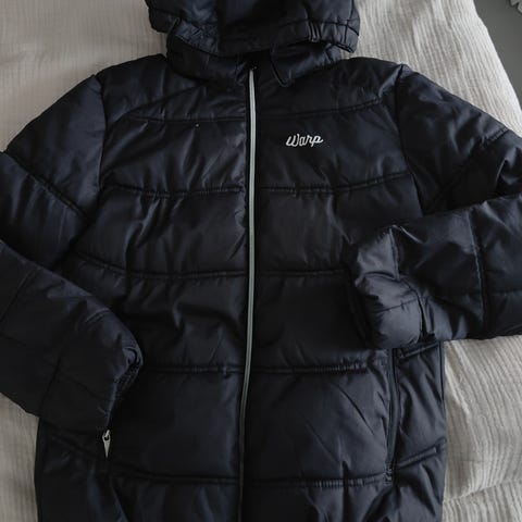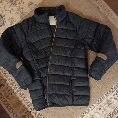 Annetaan siisti ja hyväkuntoinen lämmin ja paksu PoPin toppatakki. Lämmin fleece sisällä. Ainut vika on, että vetoketju hieman yläosasta rikki.