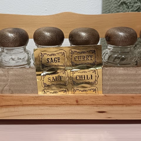 kuvan vanha "retro" mauste-hyllykkö 60-70 luvulta, leveys 30cm korkeus 18cm syvyys 5,5cm täyttö pohjassatulppa