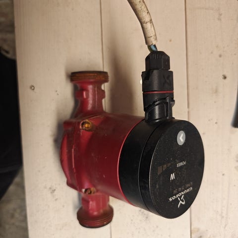 Hyväkuntoinen pumppu eteenpäin, joka jäänyt ylimääräiseksi uuden lämmitysjärjestelmän myötä. Ollut 3 vuotta vain käytössä, joten tästä pumppua pitkäksi aikaa. Uuden sähköpistokkeen saa mukaan.