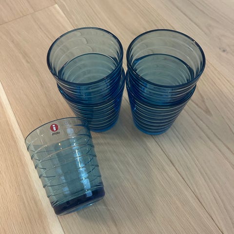 Iittala lasi sininen väri. Lasimateriaali, sopii juomalasiksi tai koristekäyttöön.5e/kpl