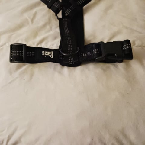 Best4pets koiran valjaat, mustat, varustettu heijastinlistoilla näkyvyyden parantamiseksi pimeässä. Valjaissa on säädettävät hihnat ja luunmuotoinen koriste.