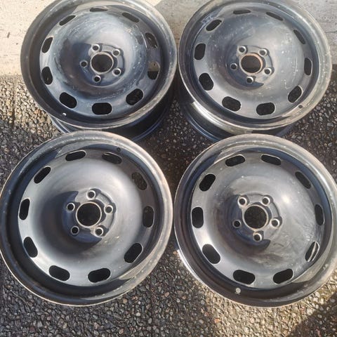 2kpl VAG:n peltivanteet 6J15, 5x100, ET38 keskireikä 57,1. Päällä huonot toispuoleisesti kuluneet DOT21 195/65R15 Bridgestonet joissa pintaa n. 3-4mm.