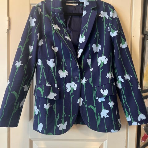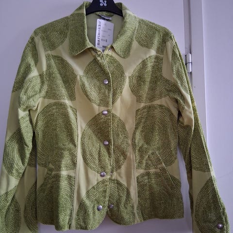 Marimekon uusi Kiehtova viivakukka jakku. Väri kauniin tummansinen vihrein ja vaaleansinisin kuvioin. Itselle väärä koko ja siksi myyn. Jakkua ei ole käytetty. Koko 42