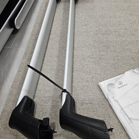 Vähän käytetyt Mercedes-Benz kattotelineet Shooting Brake malleihin x118. Mukana asennusohjeet ja neljä avainta.