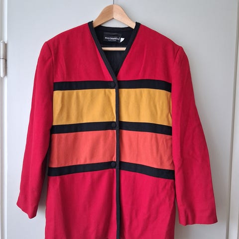 Marimekko Oprah villatakki, koko S/M. Edessä nappikiinnitys ja kaksi taskua. Materiaali 100% villaa ( ihanan pehmeää, ei kutita). Jäänyt täysin käyttämättä, laput vielä kiinni. Ovh. 199€.
