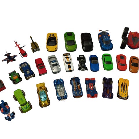 Myydään 54 kpl pikku autoja, 4 niistä vaihtavat väriä vedessä.