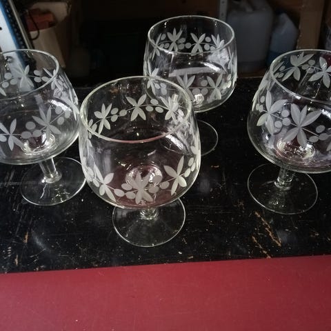 Painavat puristelasiset juomalasit. Katso pohjan hionta. Ostettu aikoinaan Antiikkimarkkinoilta. 6 cm halkaisijaltaan ja 10 cm korkeat. Savuton ja kotieläimetön talous. Yhteishintaan.