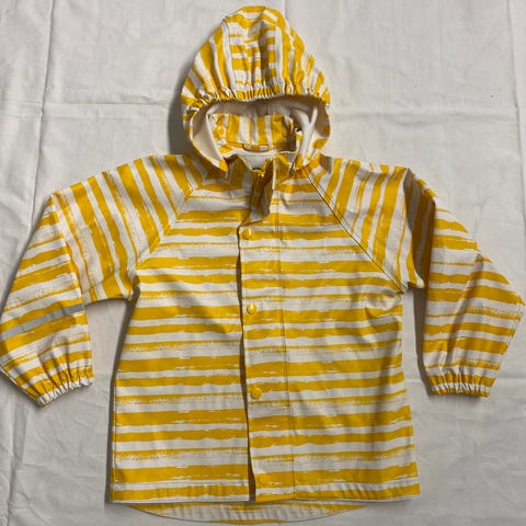 Kunto on hyvä, mutta pientä kulumaa on havaittavissa. Ripustuslenkki, josta vaatteen saa riippumaan, on irronnut toisesta päästä.
