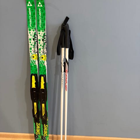 Lasten Fischer sukset 137cm ja Tecnopro sauvat 110cm
