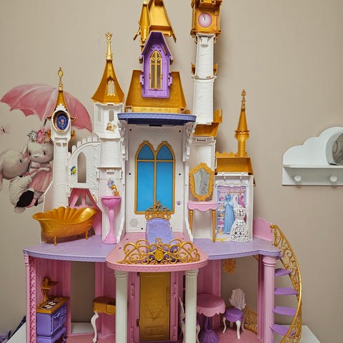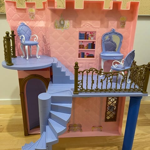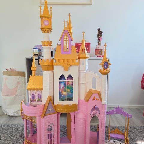 Iso, barbieleikkeihin sopiva prinsessalinna. Ostettu meille käytettynä joten ei tietoa paljonko osia alkuperäisestä puuttuu mutta hyvin on riittänyt leikkeihin silti.