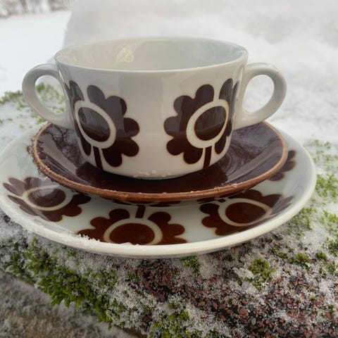 Arabian Miranda kahvikuppi ja asetti ja ns pullalautanen .Ehjä on . .Postitan myös .
