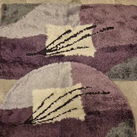 Muuten hyväkuntoinen puuvillainen kph-matto, mutta yksi sininen tahra, joka ei lähde pesussa (en ole kokeillut tahranpoistoa, asetonia tms.). Koko 120x90 cm. Merkki: Casa Stockmann.