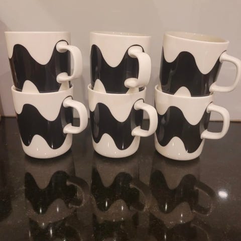 Marimekon mukisetti. Setissä 2 mukia, joiden vetoisuus 2,5 dl. Setti sisältää Oivan Lokki ja Lokki pergola mukit. Väritys vaaleanpunainen/ruskea/valkoinen. Settejä on 2 samanlaista. Mukit toimitetaan omassa laatikossaan. Nämä ovat uusia, joten sopivat esim. lahjaksi.