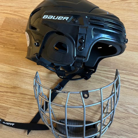 Myydään Bauer jääkiekkokypärä. Ei halkeamia ja pehmusteet hyvässä kunnossa.