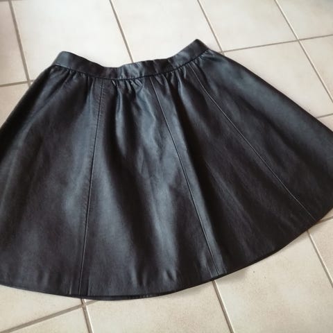 C&A merkkinen musta keinonahkahame koossa 42. Käyttämätön, mutta säilytyksestä hiukan rypyssä.
