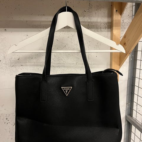 Myydään ihana vihertävän harmaa Guessin käsilaukku erinomaisessa kunnossa. Irrotettava olkahihna, kantokahvat. Sisällä vetoketjutasku ja 3korttitaskua.