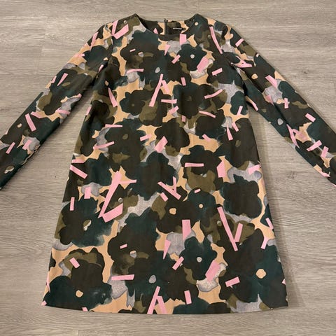 Marimekon Palsta musta-valkoinen tunika/mekko. Mitat; edestä kauluksesta helmaan 76cm, takaa kauluksesta helmaan 85cm, kainalo-kainalo 49cm, kainalosta hihansuuhun 46cm. Materiaali 95% viskoosia ja 5% elastaania, joustaa. Koko XL, aika vähälle käytölle jäänyt, edelleen siisti ja hyväkuntoinen.