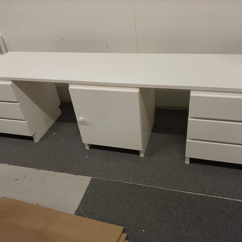 Vuosia hyvin palvellut, käytön jälkeäkin löytyy. Muurame valkoinen kirjoituspöytä. Pöytälevy, pikkukolmonen laatikosto ja kaappi. Toisin kuin kuvassa, myytävänä olevan pöydän kaapissa ei ole kolhua! Alunperin näitä oli 2kpl, parempikuntoinen siis vielä jäljellä.