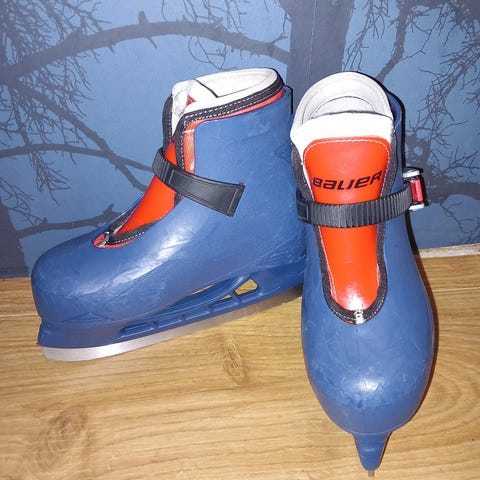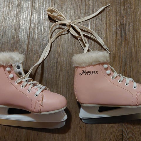 Lasten luistimet, koko 30, mustavalkoinen väri. Terät mukaan. Kokkokangas. Ei postitusta