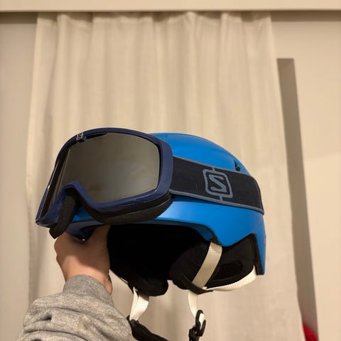Hyväkuntoiset Salomon laskettelukypärä ja Everest lasit. Koko M.
