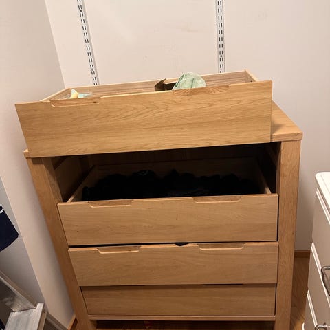 Jo elämää nähnyt, mutta vakaa ja tukeva ikean lipasto. Voi laittaa myös kyljelleen. Laatikot saa mukaan.