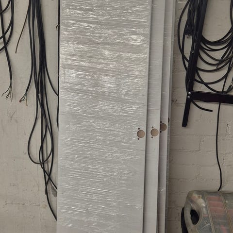 54kpl uusia kaapin oven vetimiä saa asennettua ilman taustalevyä niinkuin kuvassa näkyy. 96mm ruuvien leveys.