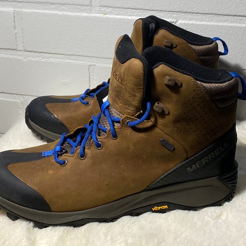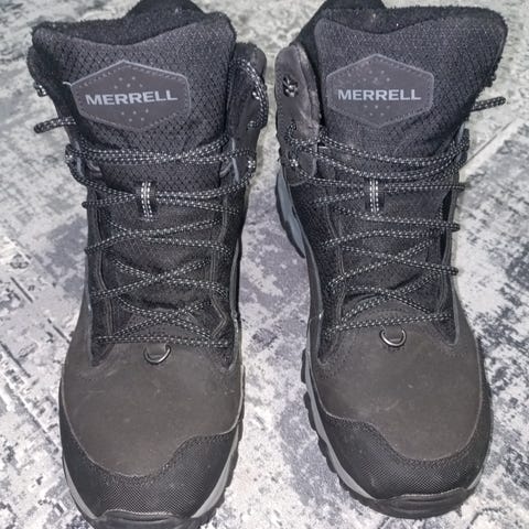 Koon 46 Merrelin miesten talvikengät. Pohjallisen pituus n. 29,5 cm. Siistikuntoiset käytetyt, ei pesty. Ei varsinaista vikaa, lähinnä irtolikaa pinnassa.