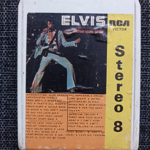 Huollettu 8-raita kasetti johon vaihdettu uudet huopatyynyt ja splice-teippi. Labeleissa kuplaa. Testattu toimivaksi.