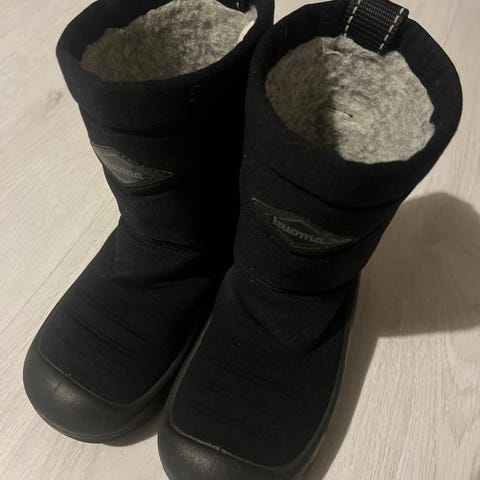 Kuoma lasten talvikengät, koko 26. Kengissä musta väri ja lämmin vuori. Sopivat unisex-käyttöön.