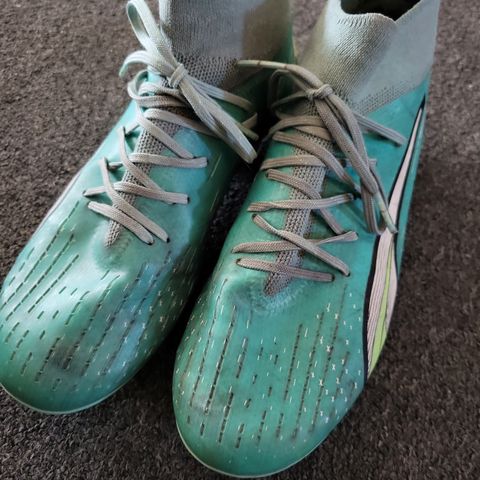 Siniset Puma Future MG jalkapallokengät koko 37 1/2. Kumirouhe värjännyt, mutta muuten siistit ja ehjät seuraavalle kovaan käyttöön.