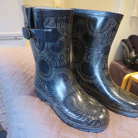 Hyväkuntoiset kumisaappaat. Jääneet vähälle käytölle. Varsissa hieman tummumaa kuran jäljiltä.