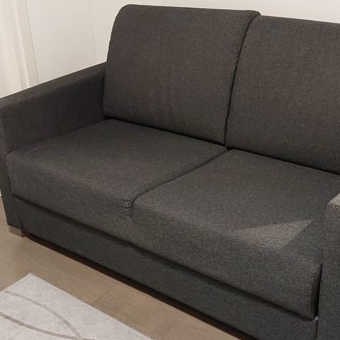 Kahden istuttava hyväkuntoinen vuodesohva. Kestävä kangas, pehmeä istua. Avattuna nukkumatilan leveys 120cm.