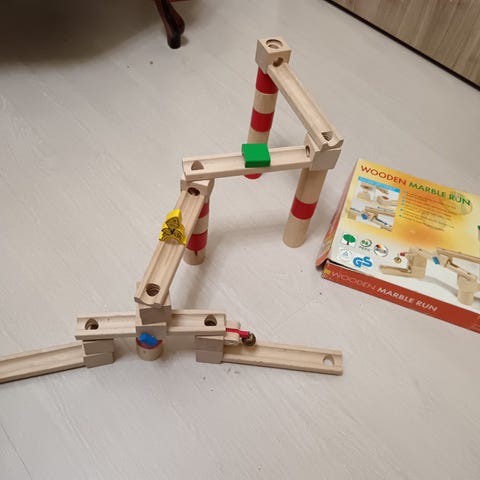 Marble Run lasten lelu, sisältää puuosia joista voi rakentaa erilaisia marmorikuularatoja. Sopii lapsille 3–10-vuotiaille.